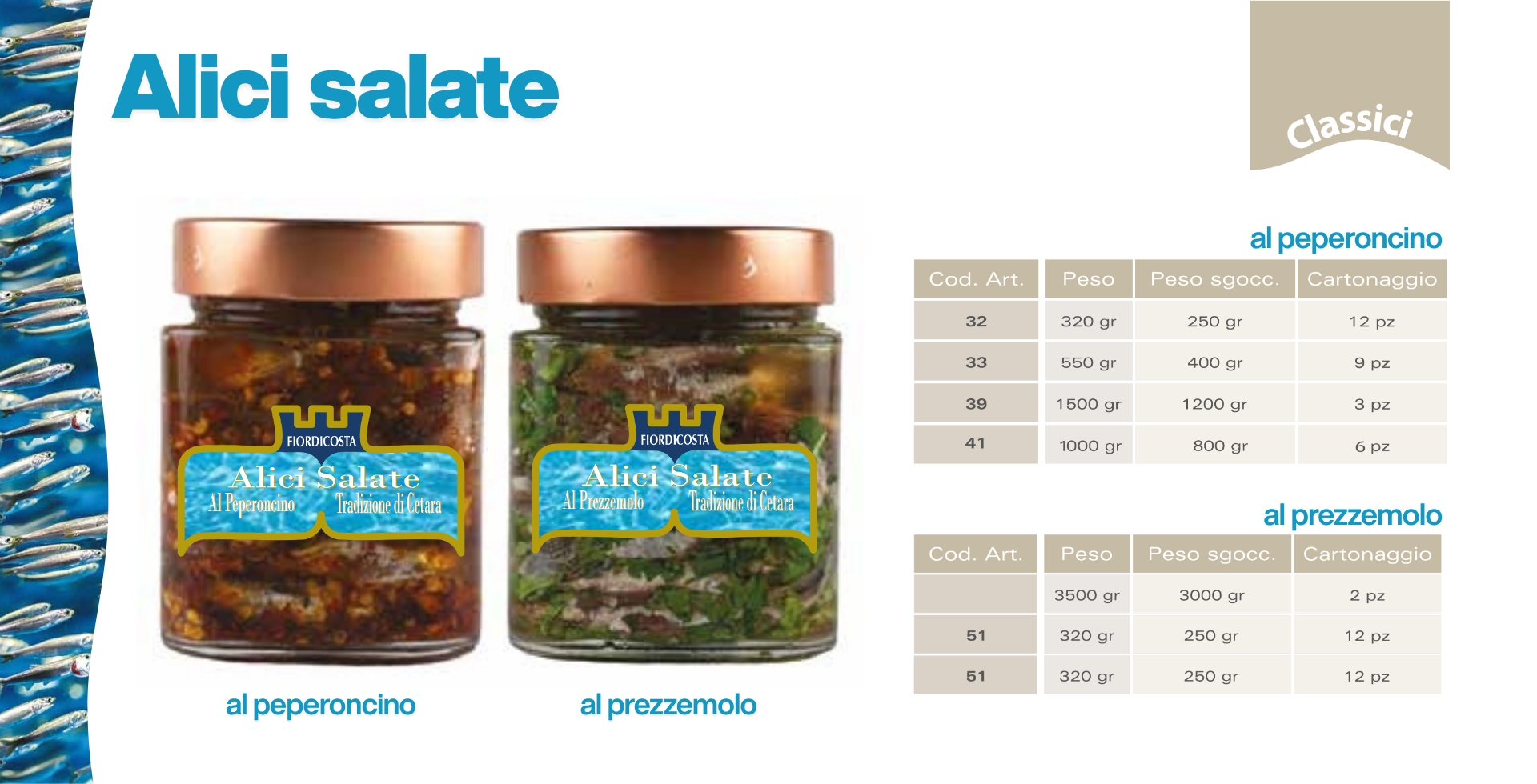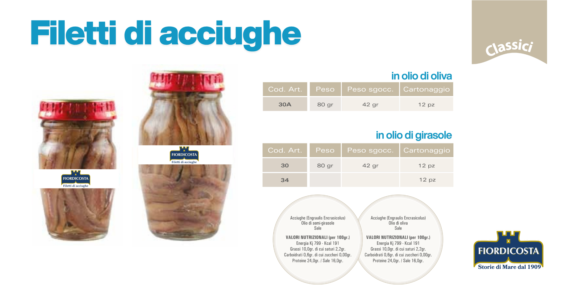 La linea I Classici raccoglie le specialità che da generazioni rappresentano l’anima di Fiordicosta.
